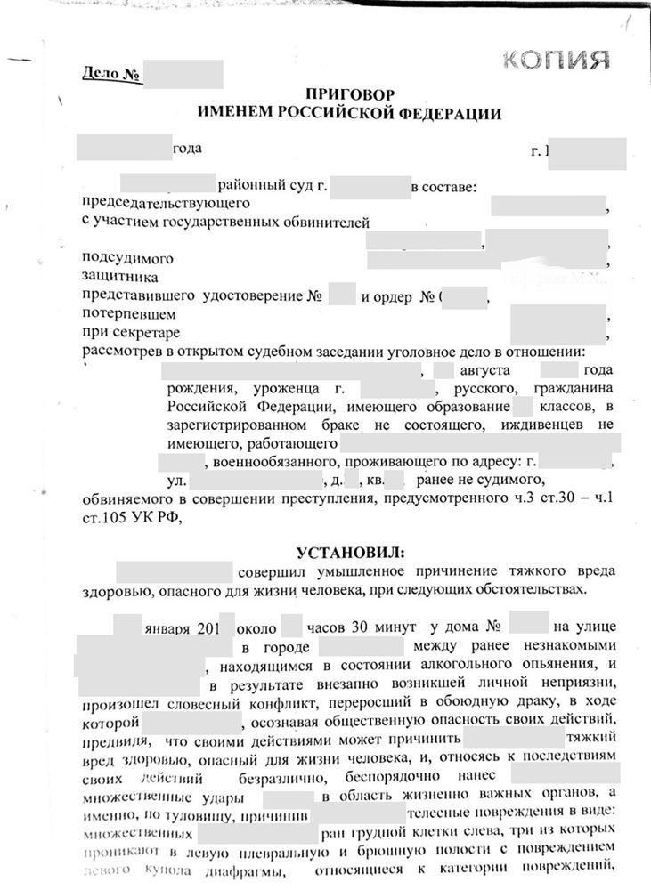 Несмотря на сопротивление следствия, упорно настаивавшего на статье о покушении на убийство (ч. 3 ст. 30, ч. 1 ст. 105 УК РФ), адвокат продолжил борьбу в суде. За девять месяцев разбирательств Ефаров добился допроса новых свидетелей, назначения серии экспертиз и кропотливого пересмотра улик. Результат? Суд переквалифицировал действия подзащитного на ч. 1 ст. 111 УК РФ — причинение тяжкого вреда здоровью.
